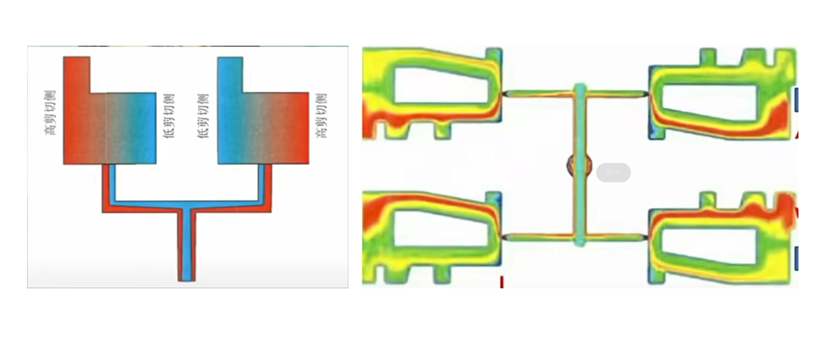 流道设计让材料以最短距离进入模腔,无需拐弯,保证材料温度一致性,避免冷料产生,同时通过注塑备压使材料熔融更均匀。
