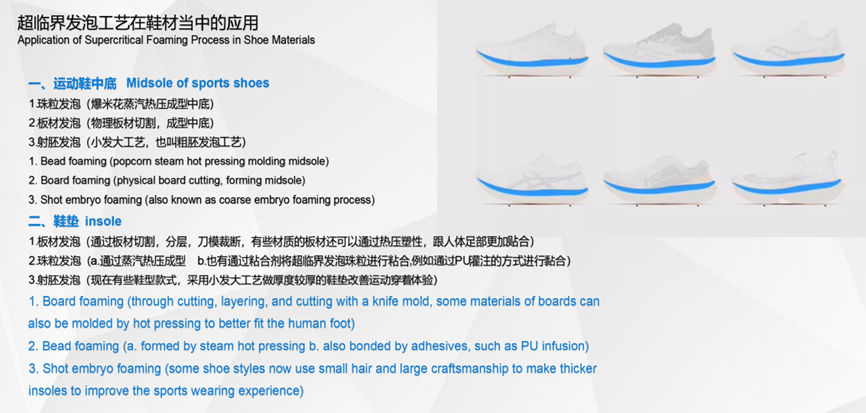 应用场景:超临界发泡工艺在鞋材中主要用于生产鞋中底与鞋垫,产品优势显著。